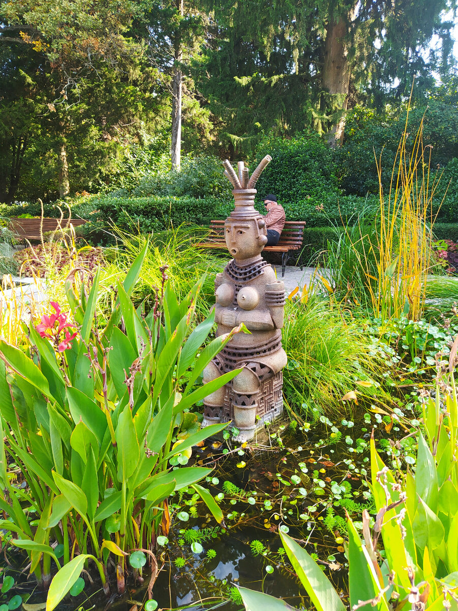 Статью начала писать в начале ноября 2021. Но на телефоне заглючила карта памяти, и все фото пропали. Пришлось восстанавливать из облака.... Но не могу не показать Никитский ботсад осенью. Там так красиво!!! Ну что, мы снова ездили в Ялту. За последний месяц - это 5 раз!!! И Ялта нам даже не надоела!! Мы там открыли для себя столько нового и интересного... От работы мужа организовали экскурсию. Мы не могли не поехать. Ведь для разнообразия очень здорово иногда съездить куда-то на автобусе, да ещё и с экскурсоводом. Экскурсовод нам попался прекрасный!!! Огромное удовольствие получили от ее рассказов) Билет в Никитский ботсад стоит 300₽. С последнего нашего посещения этого места тут появилось кое-что новое. Например, вот такая скульптура В этом году Парад хризантем ещё не открыт. Но сейчас тут "парад колеусов". Здесь высажены очень красивые сорта колеуса. Я поняла, что надо обязально посадить эти растения на даче. Первым делом мы зашли в картинную галерею. Из всего , выставленного та