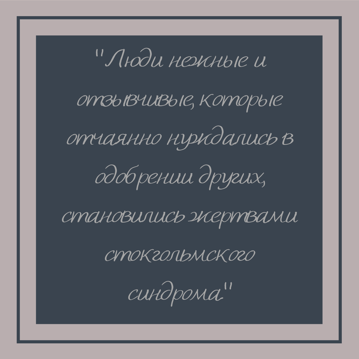 Каждый, из живых существ, наделён инстинктом самосохранения. В опасной для жизни ситуации, запускаются механизмы, ответственные за сохранение жизни, любым возможным и невозможным путём. Один из подобных механизмов в психологии - стокгольмский синдром. Понимается стокгольмский синдром, как проявление сочувствия к насильнику со стороны жертвы, оправдание его злодеяний, перекладывая вину на себя. Как это связано с инстинктом самосохранения? Очень просто! Когда жертва, проявляет понимание, сочувствие к агрессору, послушание, всячески оправдывает его, выставляет себя виноватым, таким образом, вызывает симпатию к себе, и повышает вероятность помилования. Конечно же, данный синдром не развивается просто так. Чаще всего он приобретается в следствии психологической травмы, настолько сильной, где жертва понимает, что вот-вот попрощается с жизнью, и рассчитывать на спасение она может, лишь положившись на насильника, в руках которого, пусть даже крохотный, но шанс на спасение. В бытовых условиях