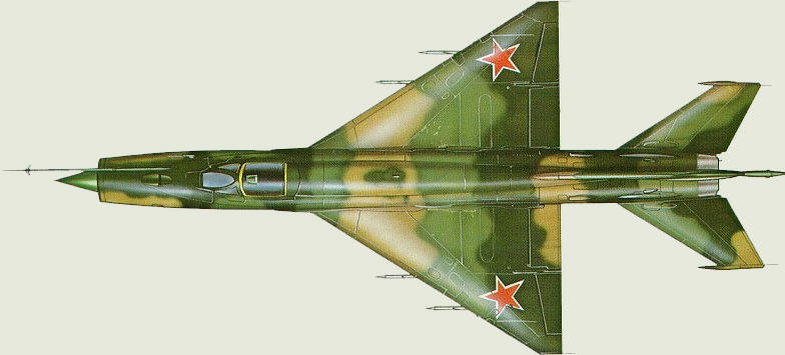 Блоки НАР УБ-32 (каждый с 32 ракетами калибром 57 мм) предназначались, в основном, для стрельбы по наземным целям. Емкость внутренних топливных баков истребителя составила 2650 литров. Самолет выпускался в 1968-1974 г. в Горьком. Экспортный вариант истребителя МиГ-21СМ, самолет МиГ-2М, был оснащен менее совершенным двигателем Р-11Ф2С-300, радиоприцелом РП-21МА (модификация прицела РП-21М) и оптическим прицелом АСП-ПФД. Ракетное вооружение включало четыре УР, однако вместо ракеты Р-3Р под самолет подвешивались более старые РС-2УС. Максимальная масса боевой нагрузки на внешних узлах подвески могла достигать 1300 к г. Самолет строился серийно на ММЗ «Знамя труда», а также по лицензии в Индии в 1973-1981 г. (первый индийский МиГ был передан ВВС этой страны 14.02.74 года). Самолет МиГ-21МФ (изделие 96Ф) с ТРДФ Р-13-300 являлся усовершенствованным вариантом истребителя МиГ-21СМ. Его вооружение было дополнено первой в мире УР ближнего боя Р-60, способной поражать маневрирующие с большими перегрузками самолеты на близких дистанциях (число ракет этого типа на самолете могло достигать шести за счет применения двух спаренных пусковых устройств). Самолеты выпускались в 1970-1974 на ММЗ «Знамя труда» и в 1975 г. в Горьком. В 1971 году группа истребителей МиГ-21МФ советских ВВС посетила с дружественным визитом французскую авиабазу Реймс. На самолете МиГ-21МТ (изделие 96МТ) была значительно увеличена емкость накладного топливного бака, за счет чего суммарный объем топлива во внутренних баках достиг 3250 л, а практическая дальность (без ПТБ) возросла по сравнению с самолетом МиГ-21МФ на 250 км. Истребитель строился в 1971 г. на ММЗ «Знамя труда». Самолет МиГ-21СМТ (изделие 50) также имел топливные баки большой емкости (хотя и не столь вместительные, как на МиГ-21МТ: их объем был уменьшен до 2950 л). Истребитель серийно выпускался в 1971-1972 г. в Горьком. Опыт Вьетнама и ближневосточных войн вновь подтвердил огромное значение маневренных характеристик истребителей. Увеличение маневренности стало ключевым направлением развития истребительной авиации в 1970-е годы.