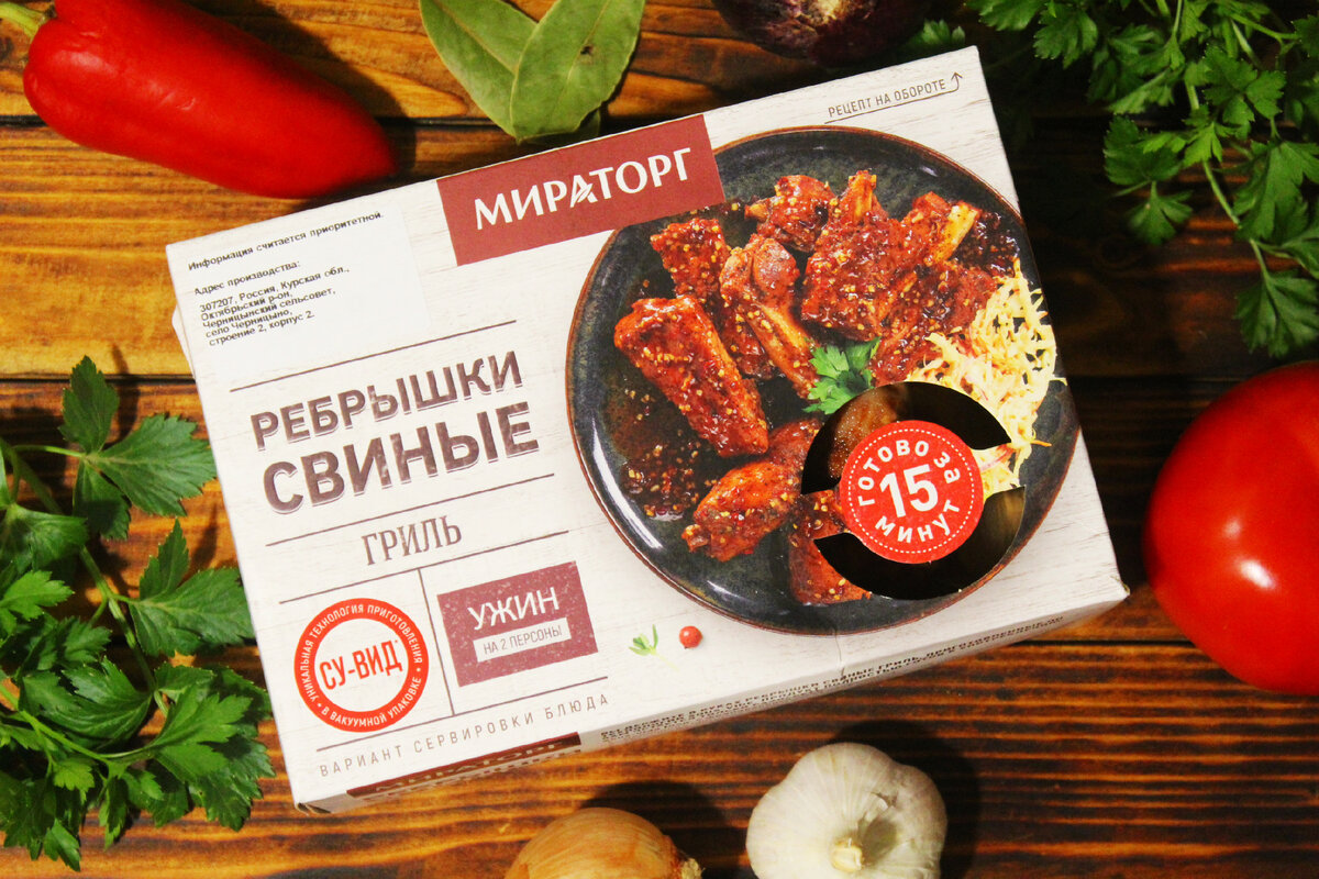 Сегодня я, наверное, целых полчаса бродил по Магниту в поисках чего нибудь интересного для обзора. И единственным продуктом, что мне показался более-менее подходящим, стали свиные ребра, уже готовые к употреблению, от известной компании "Мираторг". Привлекли они меня, прежде всего, своей ценой. Упаковка, массой нетто 600 грамм, обошлась мне всего в 160 рублей. Как по мне, вполне адекватный ценник для такого продукта. Ребра эти приготовлены по технологии су-вид, и полностью готовы к употреблению. Их нужно только разогреть. Про состав ничего говорить не буду, и так понятно что в нем в изобилии присутствуют различные пищевые добавки. Это неизбежное зло с которым приходится только мириться в современном мире.