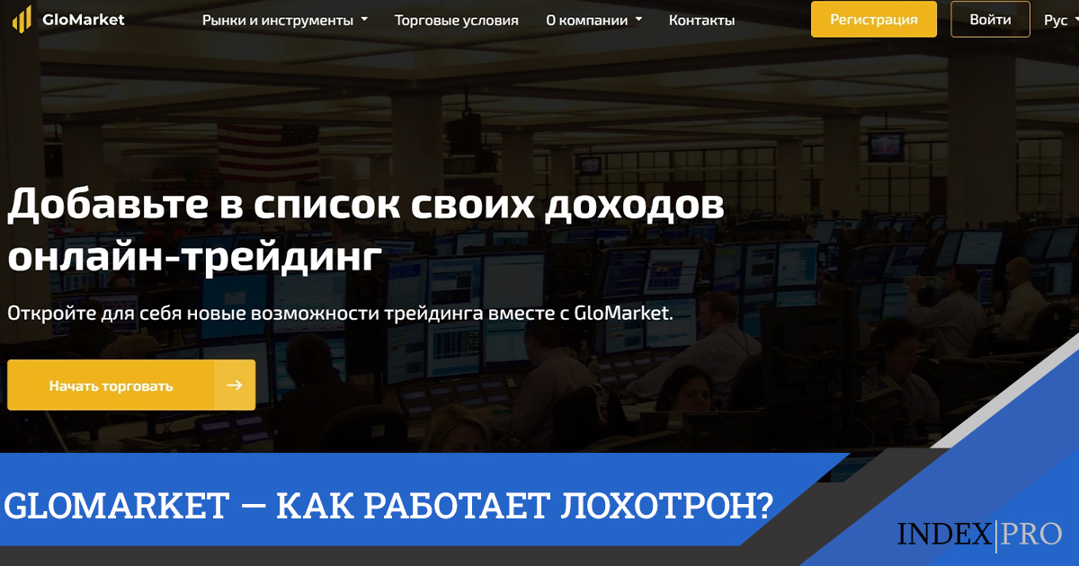 GloMarket — брокер, который создает видимость надежной компании с солидным стажем работы, а на самом деле является обыкновенным лохотроном с фейковыми лицензиями. Благодаря легенде, он производит на начинающих трейдеров положительное впечатление, поэтому легко завлекает на сайт и уговаривает открыть депозит. Мы разоблачим каждый элемент легенды “ГлоМаркет”, чтобы как можно меньше людей попалось в сети мошеннического проекта.