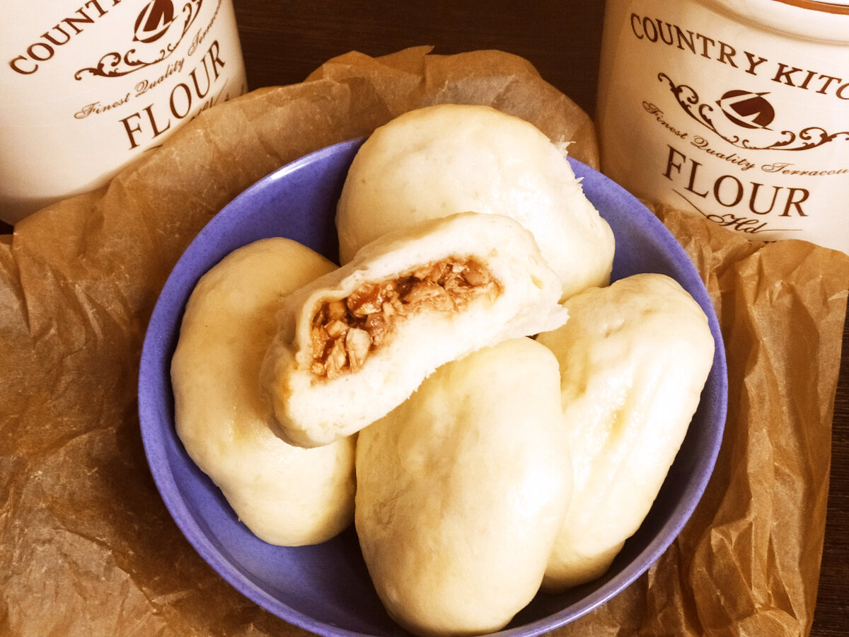 Традиционные китайские булочки на пару. Также очень популярны на Филиппинах. Начинка допускается - свинина, курица, говядина и даже креветки. На 7 штук Тесто: