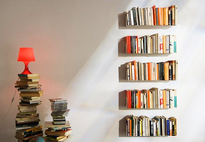Может показаться, что полки нет вовсе, и книги висят в воздухе, но весь секрет в правильном расположении держателя.
