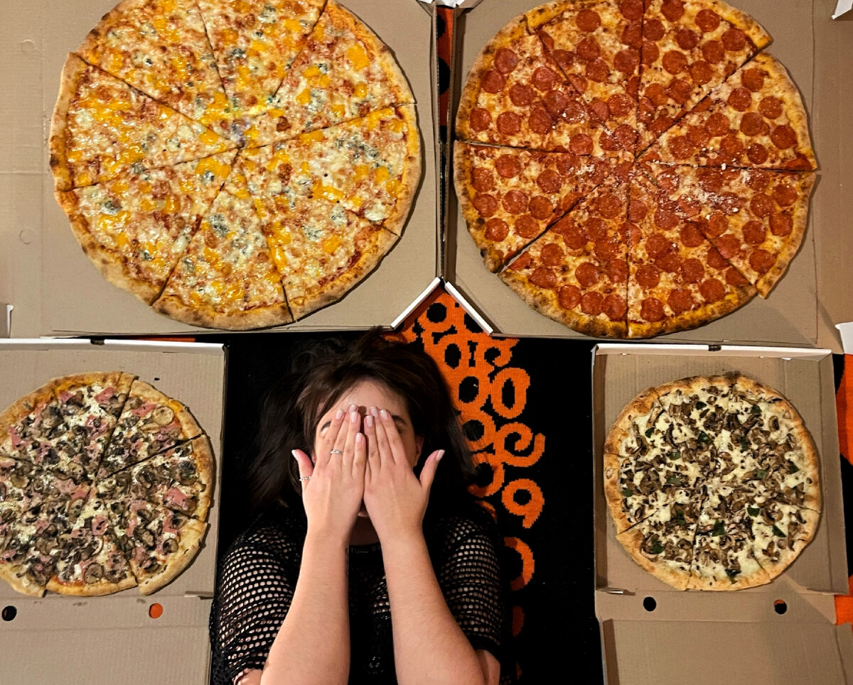 📍 Slice NYC Pizza Думаю, что вы уже видели эти огромные куски пиццы в инстаграме. До самой пиццерии я так и не дошла, но доставку затестила ещё на прошлой неделе. Делюсь впечатлениями. Мы попробовали: Слайсы 60 см: •маргарита (250₽) •помидоры и моцарелла (260₽) •ананас и ветчина (320₽) •супермясная (330₽) Один слайс весит примерно 350 гр, поэтому можно взять несколько штук и пошерить с друзьями. Удобно, если вы хотите прогуляться и быстро перекусить на улице (актуально). Больше всего понравился слайс с анансом и ветчиной. Если любите сочетание сладкое+соленое, заказывайте. Супермясная удивила количеством начинки. Ее очень много! Вариант для голодных. Пицца 60 см: •пепперони 60 см (2060₽) •четыре сыра (3070₽) Одна пицца весит почти 3 кг! Двумя пиццами можно было накормить весь дом. Это хороший вариант, если заказываете на большую компанию. Ну и фотки на пленку получаются шикарные! Ещё важно отметить, что надо есть пиццу горячей, как только ее привезли. Можно погреть в духовке,