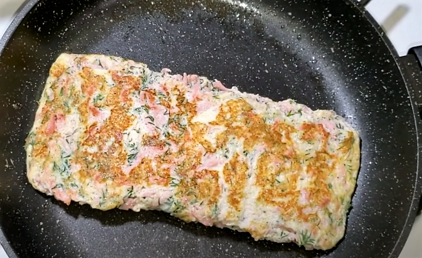 Омлет с сосиской Вкусный и сытный завтрак для всей семьи Ингредиенты: 4 яйца, 2 сосиски у меня Томаровские, 2 ст.л.зеленого мелко нашинкованного укропа, 2 ст.л.молока, 1 ст.л.топленого масла, соль и перец по вкусу, 1 ст.л панировочных сухарей, 60 г. сыра твердых сортов, Приготовление: Берем 2 сосиски и протираем их через крупную терку, в миску, добавляем мелко нашинкованный укроп. Затем вбиваем 4 яйца, солим перчим и все хорошенько перемешиваем деревянной ложкой. Далее вливаем 2 ст.л.молока и всыпаем панировочные сухари размешиваем. Ставим сковороду на огонь, разогреваем в ней масло и выливаем половину нашей приготовленной массы, на сковороду, разравниваем аккуратненько по всей сковороде и обжариваем блин 3 минуты с одной стороны, затем деревянной лопаткой переворачиваем на другую сторону. Обжариваем минуту, затем выкладываем небольшой кусочек сыра на средину блина и заворачиваем аккуратненько с одной стороны, а затем с другой и обжариваем минуту, переворачиваем и обжариваем