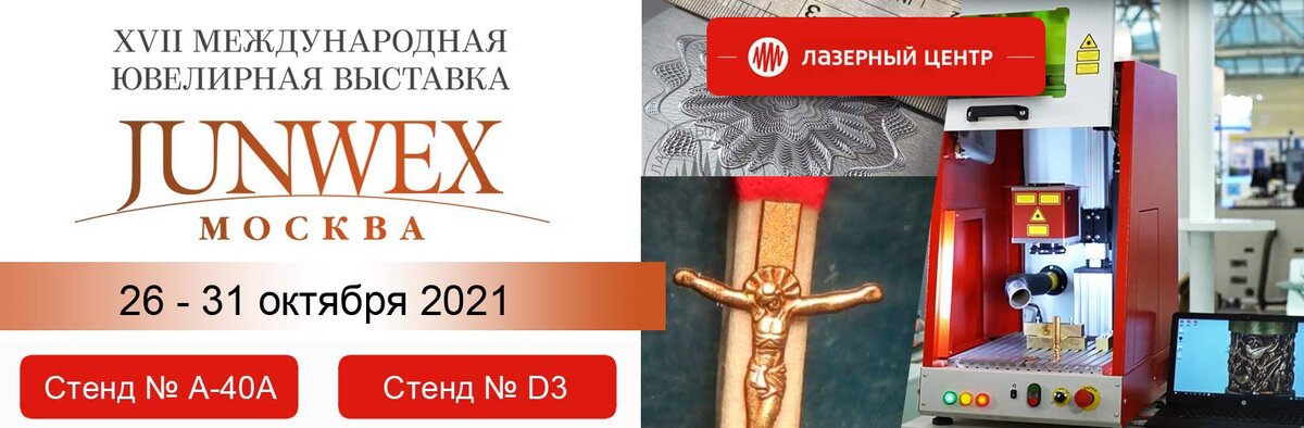 В Москве прошла специализированная ювелирная выставка JUNWEX Москва 2021, которая уже 16 сезон специализированная выставка «JUNWEX-2021» является центром притяжения дизайнерской мысли и мастерства для производственно-торговых ювелирных предприятий и компаний в сфере ювелирных технологий и оборудования. Компания Лазерный Центр высоко оценивает возможность участия в этой выставки, т.к. мы можем здесь, на одной площадке, увидеть созданную Заводами и Компаниями с помощью наших технологий и лазерного оборудования и пользующуюся большим спросом у покупателей ювелирную продукцию. В этом году технологии и оборудование Лазерного Центра представлены на стенде № А-40А в Павильоне 57, этаж 1, раздел PREMIUM Вниманию посетителей и участников выставки JUNWEX мы предложили оборудование высокого класса обработки и универсальные станки для лазерной резки, гравировки, маркировки и сварки: С нашими специалистами Вы всегда можете обсудить любые технические вопросы, сделать тестовые образцы и получить комм