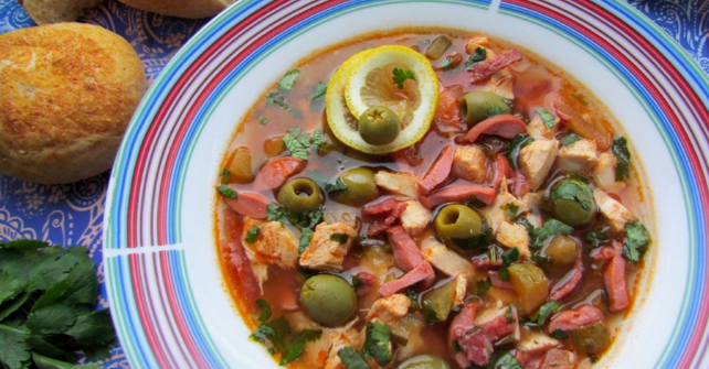 1 РЕЦЕПТ "СОЛЯНКА С КУРИЦЕЙ КОЛБАСОЙ И КАРТОШКОЙ" Солянка с курицей, колбасой и картошкой получается не менее сытной, чем с говядиной или свининой. Два вида колбасы, маслины и лимон отлично дополняют вкус этого супа! Он получается ароматным, наваристым, густым и аппетитным. Наивкуснейшая, аппетитная, ароматная - праздник каждый день!