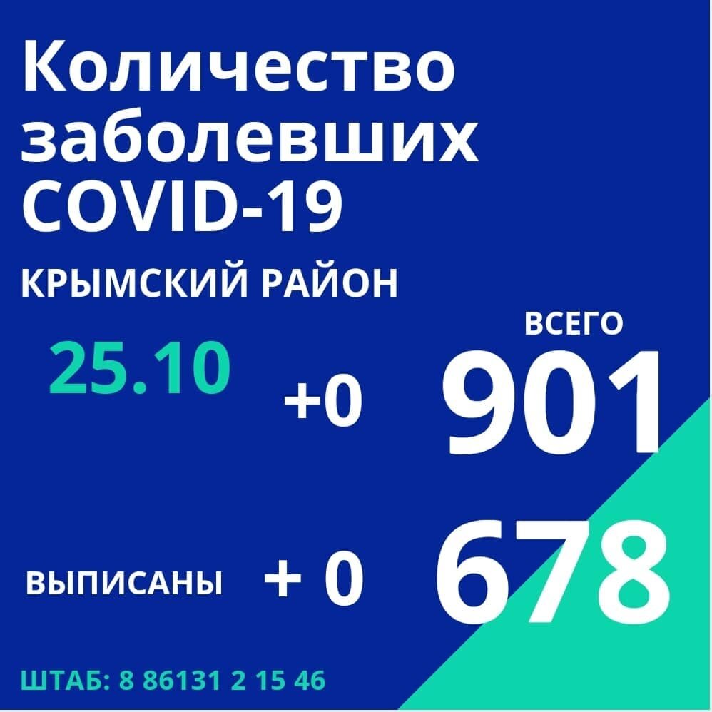 25 октября по информации оперативного штаба Краснодарского края в Крымском районе 0 новых случаев заражения коронавирусной инфекцией.⠀