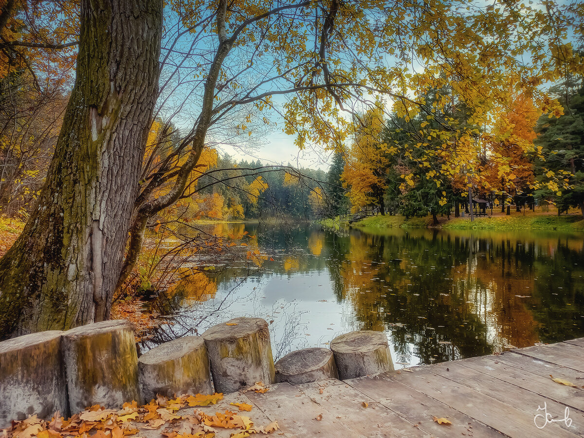 Впервые в жизни можно наблюдать удивительное стечение обстоятельств: в п. Власиха Московской области благоустроена набережная, очищено озеро и осень. Такого здесь не было никогда. Примечателен тот факт, что весь материал отснят на... мобильный телефон Samsung Galaxy A32. Единственный и главный недостаток такой съёмки — на выходе получаются очень маленькие фото размером максимум 1600 х 1200. Их нельзя продать и можно только постить. Слабая матрица делает плохую детализацию (не считая, конечно, узкого динамического диапазона). В остальном — умелая обработка решает почти всё, в чём я год за годом убеждаюсь больше и больше. Небо абсолютно на всех фото вышло пересвеченным. Поэтому я просто нарисовал его с помощью Luminar. Они постоянно совершенствуются. И теперь нарисовать в нём можно не только небо, но и солнце, салют, радугу и ещё много всего. В остальном же всё сделано, как обычно. Цветокоррекция в Lightroom. Кое-где пришлось стереть висящие кабели связи. А дальше простой набор фильтров