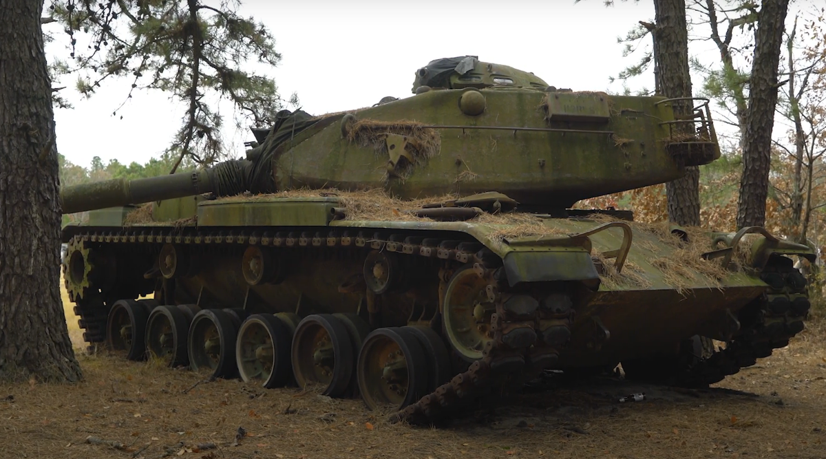 Эта старая американская рухлядь именуется танком. Модель называется M60, и разработана она была в 1959 году, а выведена из эксплуатации в 1987 году. И поскольку этого металлолома на задворках Асашай скопилось знатное количество, вместо того, чтобы переплавить и сделать новые, американцы безвозмездно одаривают разные дружественные страны этими машинами в качестве военной помощи. А эти дружественные страны очень рады бесплатным танкам и взамен проводят лояльную проамериканскую внешнюю политику и всячески демонстрируют благодарность. Вот один из таких не ездящих и не стреляющих танков нам попался на окраине леса. Видимо местные военные пытались его завести и возможно даже пострелять, а потом плюнули на это дело и оставили в лесу, подальше от любопытных глаз. Могли бы хоть ёлками закидать, а то как-то уж совсем неудобно: страна хочет в НАТО, а у неё в лесу стоит танк бесхозный, а внутри блогеры ошиваются и всё снимают на камеру. Больше-то снимать нечего, меди же нет, один чермет. Интересн