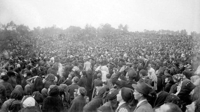13 октября 1917 года от 30 до 100 тысяч человек собрались в португальской деревеньке Фатима, чтобы стать свидетелями чуда, предсказанного тремя детьми. Впоследствии они сообщили, что видели вращающийся диск, пробивавшийся из тёмных облаков прямо над их головами. Прежде чем исчезнуть, он осветил толпу ярким разноцветным светом. Феномен наблюдался в течение около 10 минут, и самые впечатлительные португальцы позже стали утверждать, что разглядели Деву Марию, матерь божью. Случившееся в тот день остаётся загадкой до сих пор. Тем не менее, в 1951 году Папа Римский официально провозгласил это событие чудом. Некоторые учёные предполагают, что видения возникли у людей вследствие того, что они слишком долго смотрели в сторону Солнца.