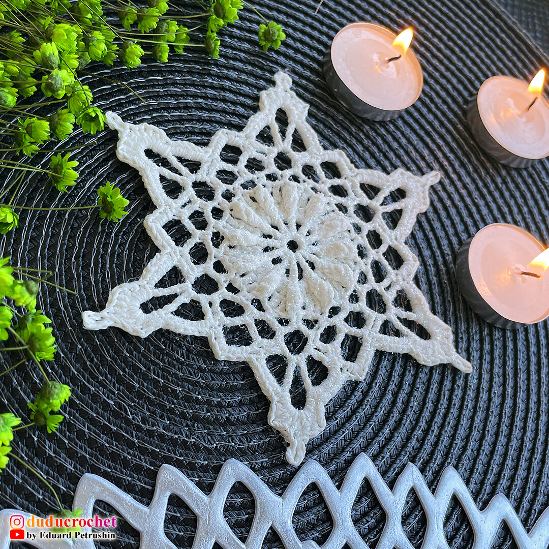Снежинка крючком, видео мастер-класс на YouTube Duducrochet