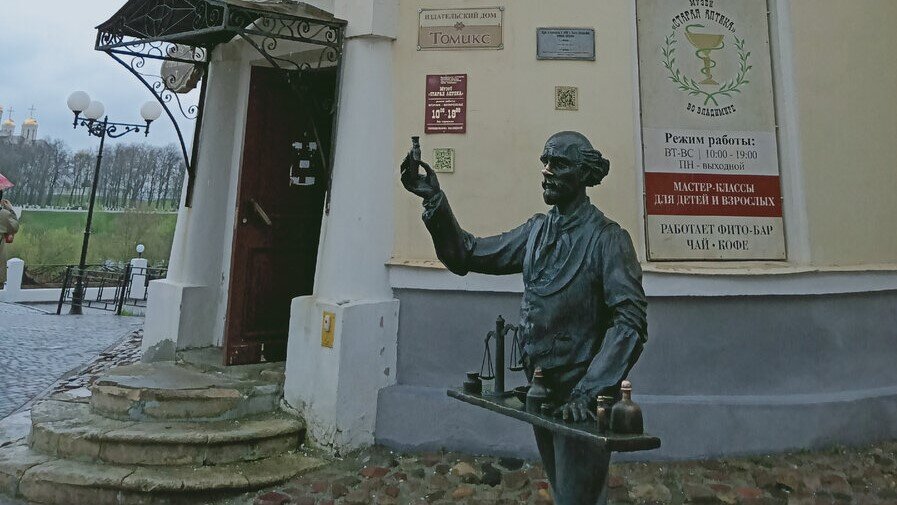 В городах "Золотого кольца" множество исторических мест, музеев, храмов и памятников архитектуры. И Владимир - один из таких городов, в котором куда ни пойди, обязательно встретишь какой-нибудь памятник старины. И вот так, просто прогуливаясь по историческому центру города Владимира по пешеходной Георгиевской улице, мы наткнулись на интересный музей - "Старая Аптека". Само здание является достопримечательностью города. Оно сохранилось почти в первоначальном виде с момента постройки. В этом доме с 1805 года по 2008 год постоянно была действующая аптека, а открылась она по указу губернатора, князя Ивана Михайловича Долгорукого. У его супруги, Евгении Сергеевны, в марте 1804 года обнаружили чахотку, и в мае она умерла. Возможно, это событие и стало одной из причин открытия аптеки. В то время казенных аптек в городе не было, приходилось ездить за лекарствами в Москву. А в 2017 году здесь был был открыт музей. Мы решили посетить это интересное место, чтобы посмотреть, как в России за