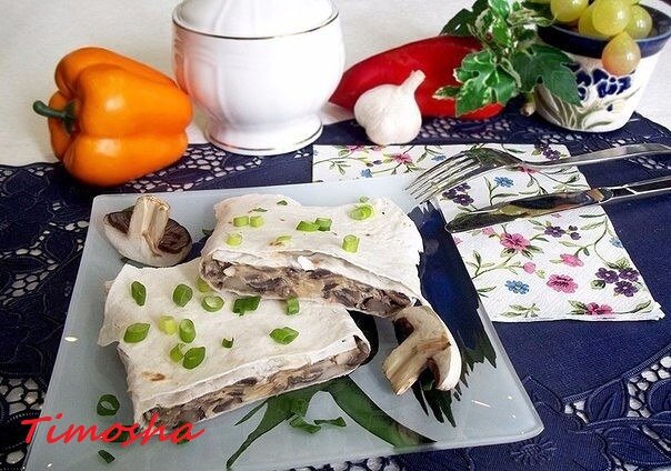 Я уже писала, что полюбила шампиньоны, потому что они не требуют много времени. Они всегда есть у меня в холодильнике. На любом празднике у меня есть блюдо с грибами. Друзья мужа всегда когда приходят, спрашивают, а будет ли сегодня что-то вкусное с грибочками. Этот рецепт я как-то приготовила в шутку, в качестве закуски, когда к мужу пришли друзья. Они же всегда спрашивают про грибочки подумала я. Но закуска всем так понравилась, что попросили добавки. Я когда сама попробовала, удивилась, что и в правду это очень вкусно получилось. Очень аппетитно и просто. Сохраняйте рецепт. Для жульена в лаваше нам потребуется: Приступаем к приготовлению жульена в лаваше: Приятного аппетита!!! Готовьте с Тимошей!!