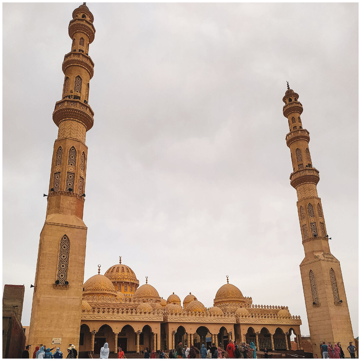 г. Хургада, Египет Центральная и самая крупная мечеть города. Построена не так давно в 1968 году и исключительно на деньги прихожан. Посетить ее внутри не так уж просто. Ведь не менее 6 раз в день она закрывается для посетителей немусульман. Обязателен строжайший дресс-код. Но можно и взять одежду на прокат, как это сделали мы. Прямо у входа во двор мечети. Обязательно разуться на входе. Башни мечети (минареты) в высоту достигают 40 метров, то есть возвышаются на высоту 13-этажного дома. Кроме них есть ещё 25 куполов. Фото этого, конечно, не передают, но есть информация, что одновременно в мечети могут поместиться около 10000 человек. Изначально мечеть была белого цвета, но песок пустыни не щадил стены и очень быстро они становились пятнистыми, поэтому и были перекрашены в цвет песчаника Хургады. А совсем рядом от мечети находится тот самый рыбный рынок, фото которого были раньше. Ну и соответственно огромная пристань. Поэтому ещё одно название мечети - портовая. Ведь те, кто пребыва