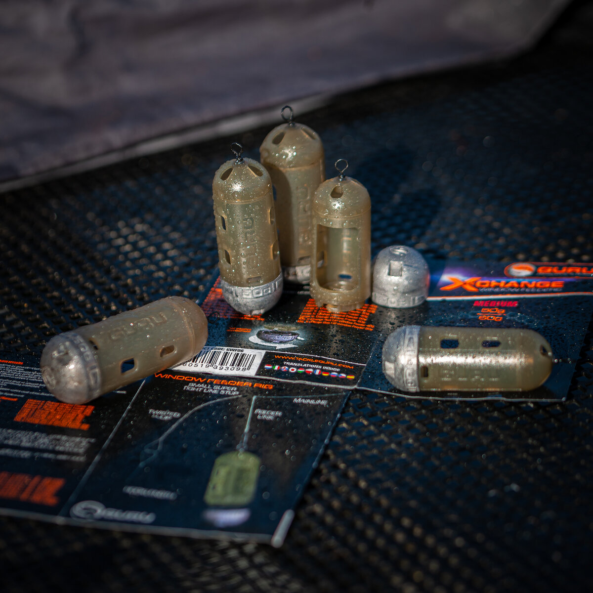 Guru Window Feeder X-Ghange - кормушки нового поколения прямиком от создателей фидерного направления ловли, т.е. из Англии. Что такое фидерная ловля? Это наука, наука рыбе, с элементами стратегии! Тут и ихтиология, и шахматы, что то еще субъективное! Важно, что знания о рыбной ловле совершенствуются постоянно, и ярким тому примером стал выход в свет кормушки типа “window” - окно! Суть которой заключается в том, что кормушка отдает корм только на фазе выматывания, т.е. это либо подсечка, либо перезаброс! Что нам дает такая работа кормушки? Сейчас отвечу субъективно - это концентрация рыбы на насадке! Как выглядит картина в целом? Мы делаем стартовый закорм, собираем рыбу на точке, рыбу привлекает муть, повисшая в воде прикормка и живой компонент, она начинает пылесосить все вокруг, создается пищевая конкуренция и у нас идут поклевки! И бывает так, что рыба начинает показывать сумасшедшие поклевки, но мы не можем ее подсечь, у меня такое было на НФЛ. Что это значит? Лещ лезет носом в к