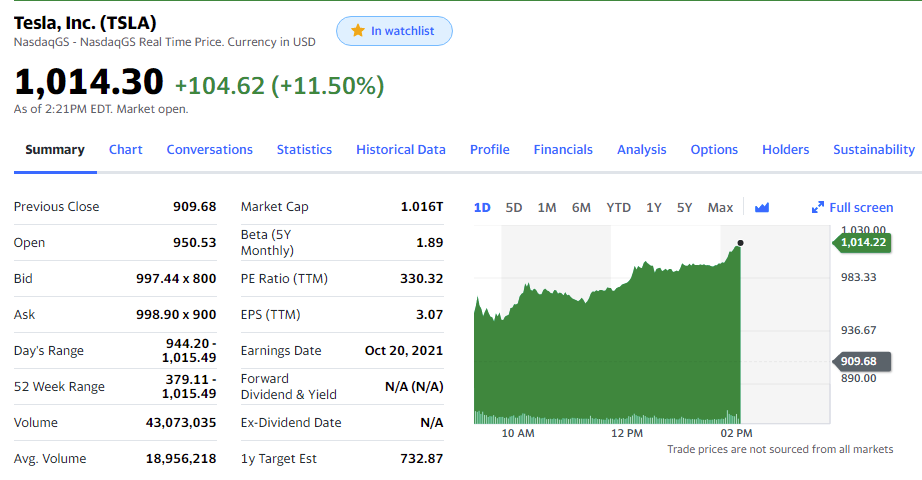 Клуб триллионеров пополнился. Tesla - компания стоимостью в 1 триллион долларов