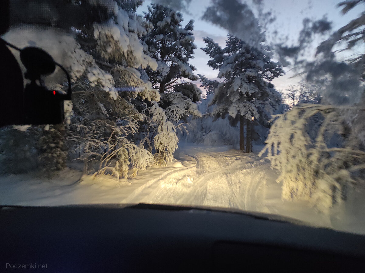 После поездки по заснеженному лесу мы выехали на главную дорогу к селу. Вдалеке видно горный массив Ловозерские тундры. Суровый северный рассвет. Скоро наступит полярная ночь, приходится радоваться и этому короткому появлению солнца. Вокруг ни души, только зимний лес и горы на горизонте. Хорошее место для встречи Нового Года, ёлку можно нарядить прямо здесь. На въезде в село видно характерные следы от снегохода. Конечно, в Ловозеро ещё можно увидеть традиционные средства передвижения северных народов. Здесь не стали полностью отказываться от оленей или собачьих упряжек. По селу протекает река Вирма, а рядом с селом распо
