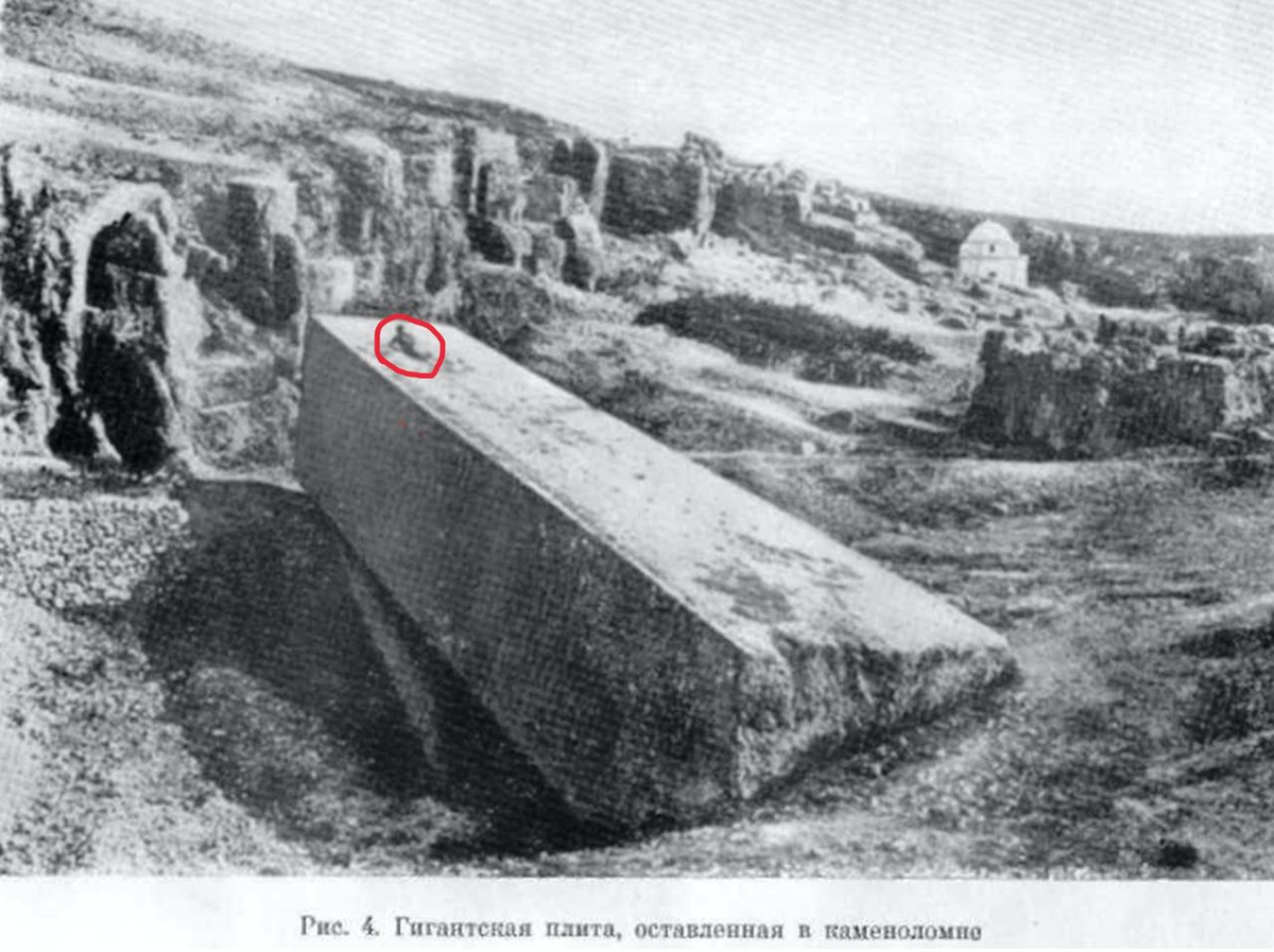 1. В каменоломне Баальбек (в Бейруте) остался огромный отесанный, но еще не отделенный от скалы камень.