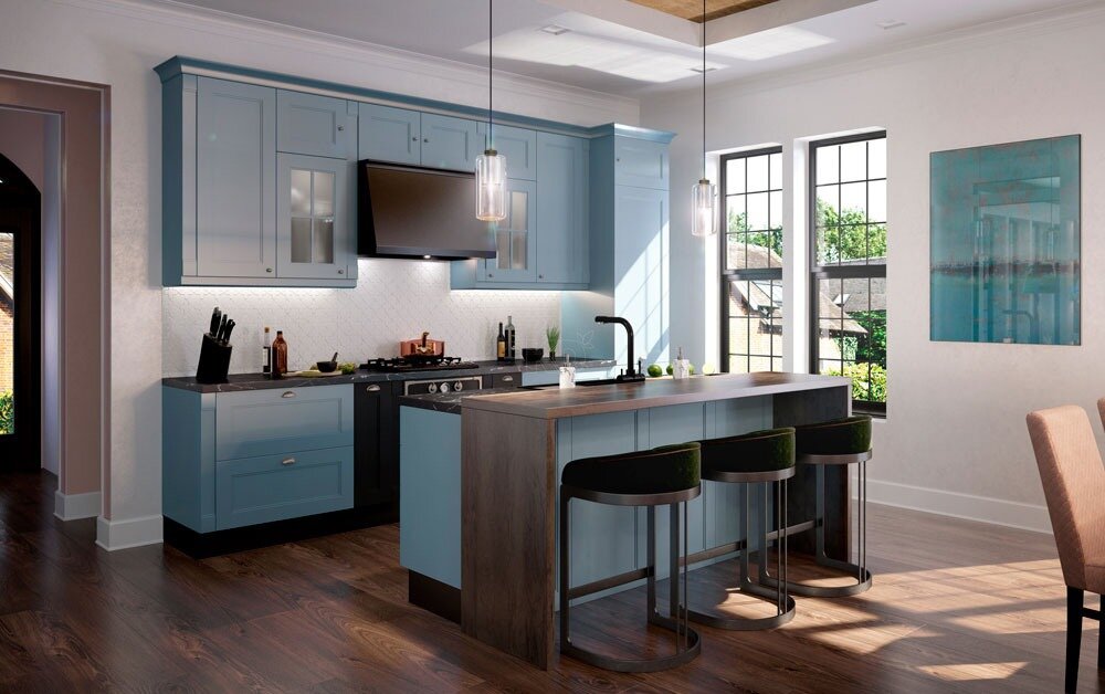 Невесомый, словно утренняя дымка… Свежий, как лёд… Мягкий, подобно дуновению ветра... Цвет «Эрики» сложно описать иначе. Пилястры, изящные карнизы, классическая фрезеровка, крестообразная раскладка на витражах и другие характерные элементы - все выглядит удивительно легко! Это ощущение «подхватывают» элементы с натуральными фактурами – «мраморная» столешница и обеденная зона острова, выполненная «под дерево». Всё вместе выглядит просто волшебно! Фасады «Эрики» создаются из MDF и покрываются особым материалом – экомембраной. Экомембрана очень близка по свойствам к клеточной мембране живых организмов: она обеспечивает фасадам прекрасный теплообмен с внешней средой, а также защищает их от повреждений. При этом экомембрана является экологически чистым, и практически не стареющим материалом. При правильной эксплуатации она десятилетиями будет сохранять первозданную глубину своего цвета! Оформить Заявку на расчет кухни по вашим размерам: https://www.kuxni.net/raschet/ Классические к