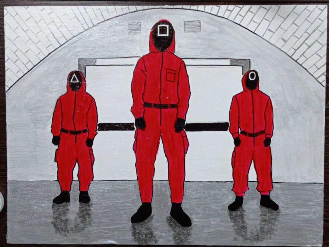 Рисунок знаменитого фильма "Игра в кальмара" Рисунок стражников, думаю самые запечатляющие личности этого фильма.