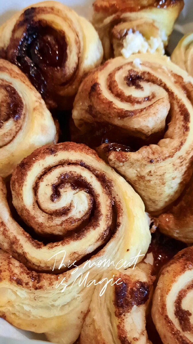 Нам понадобится Слоеное бездрожжевое тесто 1 упаковка Сливочное масло 3 ст.л. Ванильный сахар 3 ст.л. Корица 1 ст.л. Ставим духовку разогреваться до 200°. Размораживаем слоеное тесто и раскатываем в прямоугольник. Наносим растопленное масло, кладем ванильный сахар и корицу. Аккуратно собираем по ширине наше готовое тесто в трубочку и режем на равные части ( примерно размером по 5 см). На форму для выпечки стелим пергамент и выкладываем наши синнабончики на нее. Расстояние между синнабонами можно оставить 2-3 см. Убавляем духовку до 190° и ставим выпекать на 25-30 минут. Готовые синнабоны можно смазать кремом из творожного сыра, взбитый с сахарной пудрой либо глазурью Приятного аппетита❤ #булочки синнабон #простые рецепты #выпечка к чаю #домашняя кухня #выпечка из слоеного теста