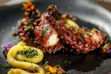 fishkka.ru Мясо осьминогов багато белком и содержит до 8- 10% жир. В мышцах много экстрактивных веществ, которые придают специфический привкус блюду из осьминога. Мясо осминого содержит витамин А, В1, В2, В3, В6, В9, В12, С, Е, К, РР. Осминог содержит такие макро- и микроэлементы как кальций, магний, натрий, калий, фосфор, железо, йод, цинк, медь, марганец, селен. Осьминоги очень полезны, так как в 100граммах варёного осьминога присутствует 350 мг. омега3 жирных кислот. А эти кислоты, как известно, участвуют во многих обменных процессах, и их мы должны получать с пищей ежедневно