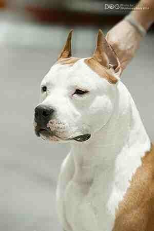 - Предками породы являются английские терьеры и бульдоги, которые скрещивались еще у себя на родине - в Англии в конце 18 века. Потомки такого смешения кровей первое время назывались буль-энд-терьерами, а основной идеей для выведения было создание такой собаки, которая могла быть использована как бесстрашный, быстрый, очень мощный, но при этом компактный боец. В первое время (до начала 19 века) буль-энд-терьеры участвовали не только в боях с собратьями-псами, но и с быками. На территории США эти собаки появились примерно в 1860-х. Ими были заинтересованы и простые труженики, и азартные любители собачьих схваток. Часто они помогали фермерам в выпасе скота, охране жилища, бесстрашно сражались с хищниками – койотами и волками. А американским стаффордширским терьером стали называть таких собак в 1972 году, внеся изменения в первый Стандарт породы, учрежденный в 1971 году Международной кинологической федерацией. Собаки этой породы активны и смелы, обладают целеустремленностью и своеобразным интеллектом. Американский стаффордширский терьер защитник по своей природе. Основной инстинкт этой породы собак защищать своего хозяина и его семью. Эта порода вряд ли подойдет человеку, который впервые заводит собаку. Обучение и социализация с другими домашними животными и детьми, живущими в доме должна начинаться как можно раньше. Как только собака поймет кто ее семья, она станет послушной и любящей. Может жить в городской квартире, получая достаточно умственных и физических нагрузок при выгуле. Абсолютно не подходят для уличного, вольерного, цепного содержания. Хозяин американского стаффордширского терьера должен стать главным и заслужить уважение. При правильном отношении владельца к воспитанию и дрессировке и отсутствии наследственных проблем с психикой, не проявляют агрессию к людям. Могут проявлять агрессию к другим собакам. Следует отметить, несмотря на то, что эти собаки любящие и нежные с семьей они нуждаются в твердом, уверенном в себе и решительном владельце, который способен утвердить над ними свою власть. Уши посажены высоко, купированные либо некупированные. Последние предпочтительны. Некупированные уши должны быть короткими и держаться приподнятыми или стоячими. Полностью висячие уши бракуются. Шерсть у американского стаффордширского терьера очень короткая и нуждается только в небольшом уходе. Регулярное расчесывание шерсти собаки щеткой с грубой щетиной и купание по мере необходимости это все, что необходимо для ухода за шерстью этой собаки. Глаза тёмные, округлые, глубоко посаженные и широко расставленные. Розовые веки недопустимы. Мочка носа обязательно чёрная. В связи с хорошо развитой грудью передние конечности широко расставлены, задние конечности очень мускулистые, скакательные суставы не вывернуты ни внутрь, ни наружу. Высота в холке — около 46—48 см для кобелей и 43—46 — для сук. Вес у кабелей 25-30 кг, суки 22-25 кг. Продолжительность жизни 10-12 лет. Регулярные тренировки также помогают этим собакам быть постоянно активными и учиться взаимодействию с другими животными и незнакомыми людьми.