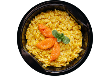 Завтрак 1 Овсяная каша на ананасовом соке с курагой Хлопья Геркулес, вода питьевая, сок апельсиновый, сок ананасовый, масло сливочное 82,5%, сахар тростниковый, соль, шафран, курага. Завтрак 2 Фирменный бургер с говядиной и горчичным соусом Булочка для гамбургера, котлета (говядина, филе куриного бедра, лук, соль, масло подсолнечное), китайская капуста, сыр чеддер, соус (майонез 67%, горчица зернистая). Обед Говядина по-корейски Говядина, соус (шампиньоны, лук зеленый, соус терияки, соус соевый, вода, смесь прованских трав, кунжут белый, перец черный молотый, мука пшеничная, масло подсолнечное), соль. Рис Рис, масло, соль. Полдник Тыквенные блинчики Тыква, пшеничная мука, молоко, меланж, мед, растительное масло, соль, вода. Шоколадным крем и ананасовый смузи Крем (вода, сливки 22%, сыр Креметта, шоколад, желатин), конфитюр (вода, ананас, пектин, сахар). Ужин Рыбная котлета в паназиатском соусе Котлета (фарш из сайды, меланж, лук репчатый, лук зеленый, сливки 22 %, томатная паста, чесно