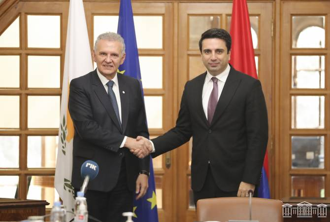 В заключительный день официального визита на Кипр делегация, возглавляемая председателем НС РА, встретилась с уполномоченным президента Республики Кипр Фотисом Фотиу. Как сообщили «Арменпресс» в управлении по связям с общественностью и СМИ НС РА, уполномоченный президента, приветствуя гостей, передал им добрые пожелания от президента Кипра, выразив сожаление, что тот несколько дней назад с рабочим визитом отбыл из страны. Председатель НС поблагодарил за встречу и теплый прием, добавив, что общности ценностей и мировосприятия армян и киприотов являются основой многовековой армяно-кипрской дружбы. Обе стороны подчеркнули важность последовательных усилий Армении и Кипра по предотвращению геноцидов, а также единой борьбы в вопросах сохранения общечеловеческих прав и ценностей и восстановления справедливости. Ален Симонян принципиальную позицию властей братского Кипра и всех партнеров Парламента по всем вопросам, касающимся Армении и армянского народа, счел неоценимой. Уполномоченный презид