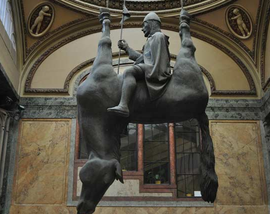 В 1999 году на пороге тысячелетий скульптор Давид Черни создал свое знаменитое произведение «перевернутый Конь