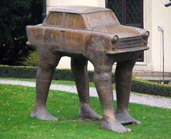 Эта бронзовая скульптура с изображением автомобиля «Трабант» на четырех ножках была создана Давидом Черни