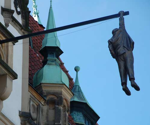 В Праге на Гусовой улице существует уникальная скульптура Зигмунда Фрейда — «Висящий человек»
