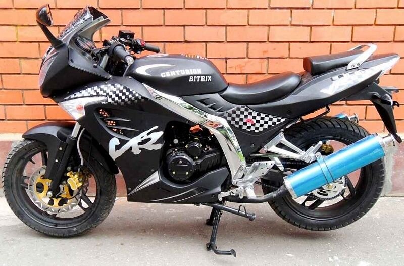 Centurion Bitrix – это мотоцикл, производство которого сосредоточено в Китае. Он представлен в нескольких расцветках: красный, оранжевый, чёрный, белый. Пластиковые детали сделаны в спортивном стиле, именно благодаря им он имеет привлекательный дизайн. Мотоцикл весит 150 килограмм, в "сухом" виде - 113. Он лёгок в управлении, и с ним может справиться даже новичок. Centurion Bitrix: технические характеристики Можно выделить следующие особенности: мотоцикл имеет воздушное охлаждение; Centurion Bitrix снабжён четырёхтактным двигателем; стартер представлен двумя видами: электро- и кикстартер; он оснащён пятиступенчатой механической коробкой передач; габариты: 1930х570х850 мм; топливный бак вмещает 15 литров; мотоцикл Centurion Bitrix развивает скорость до 120 км/ч; максимальная грузоподъёмность - 263 килограмма; оснащён 18-дюймовыми колёсами; тормоза - передние (два диска) и задние (один); мотоцикл имеет плавное торможение; Centurion Bitrix оснащён двумя глушителями; мощность двигателя - 1