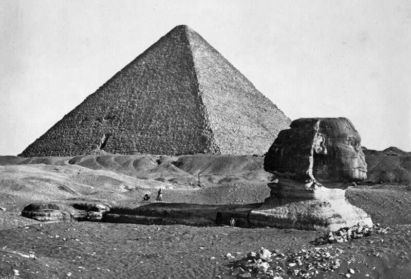 Так выглядел Большой Сфинкс в 1857 году. До того, как его раскопали. Знаменитая скульптура была погребена в песках. Вот тот же сфинкс, сфотографированный с воздушного шара. Здесь он уже наполовину раскопан. Сфинкса нашли в начале XIX века да и то – только верхушку головы. А большая часть Сфинкса была засыпана песком. Сфинкс ушел в песок по самые плечи уже в Древнем Египте. Рамзес II откапывал древнюю статую, а римляне и греки пытались укрепить ее, защитив от эрозии. Кроме носа с веками Сфинкс лишился и своей прекрасной бороды. К тому же, статуя была раскрашена. Примерно так мог выглядеть Большой Сфинкс несколько тысяч лет назад: Фото с раскопок на Западе стали мемами. Комментаторы пишут «Зачем раскопали Сфинкса? Это же котик, его лапкам и хвостику теперь холодно!»