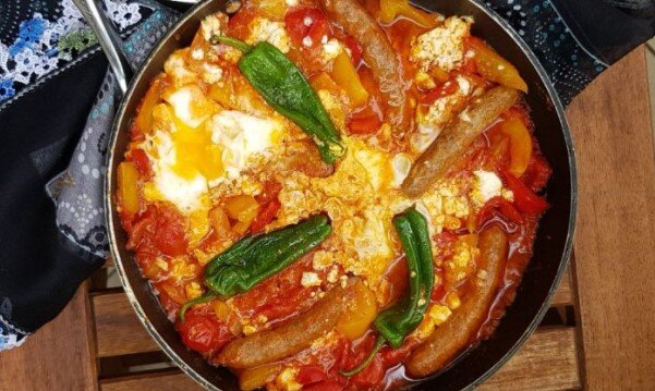 Нет, я не написала случайный текст в заголовке, это действительно такое блюдо. Приятного просмотра! В двух странах вы найдете одно и то же похожее блюдо под разными названиями. В Тунисе это оджа, и ее часто готовят без яиц, в Израиле эту еду называют шакшука, и яйца принадлежат ей.Первоначально тунисская кухня, но также поселилась в Израиле. И что еще лучше, есть еще сезонные варианты: с яйцом, картофелем, баклажанами… так что выбирайте! Но в основе всегда перец и помидоры, но и в шакшуке есть что-то лишнее ... Тебе понадобится: 1.1 луковица 2.оливковое масло 3.1 желтый перец 4.1 красный перец 5.1 банка помидоров Walfrut 6.3 столовые ложки томатного пюре 7.немного пасты харисса 8.8 помидоров черри 9.поваренная соль 10.перец 11.молотый тмин молотый 12.3 яйца 13. Кориандр необязательно сыр фета сосиски мергез Как это сделать: Лук очистить и мелко нарезать. Обжарить на масле по стеклу, добавить промытый и нарезанный кубиками перец без семян, добавить соль, перец, харисс, пюре и тмин и р