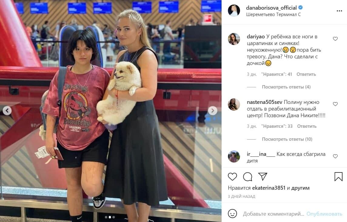 Телеведущая Дана Борисова не скрывает, что в настоящее время одинока в личной жизни. Сейчас в приоритете у блондинки воспитание дочери Полины. У девочки возникла депрессия от отсутствия общения с отцом. Эффектной блондинке приписывали множество романов. Но серьёзные отношения теледивы были замечены в 2005 году, когда она познакомилась с бизнесменом Максимом Аксеновым. Правда, до свадьбы их отношения так и не дошли. Но Максим стал гражданским мужем Борисовой. В 2007 году у пары родилась дочь Полина. Через несколько месяцев бизнесмен ушёл от теледивы. Для Борисовой наступил тяжёлый период. Вопросы, касающиеся финансового характера, возлюбленные решали через суд. В 2015 году личная жизнь блондинки начала налаживаться. В середине года она вышла замуж за Андрея Трощенко, уроженца Луганска. Через 8 месяцев после бракосочетания молодые люди решили развестись. Ни удачного союза, ни детей поклонники так и не дождались. Впрочем, в одиночестве Борисова долго не была. В 2016 году она была замечена
