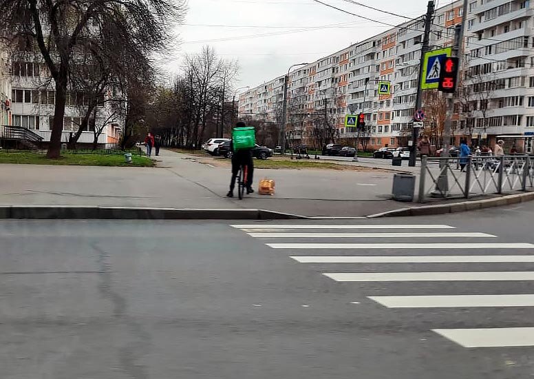 Ну вот после этого?! Кадр нечёткий, т.к. фоткала из машины, проезжая мимо. Но думаю, что хорошо видно, где находится еда у курьера... Завтрак