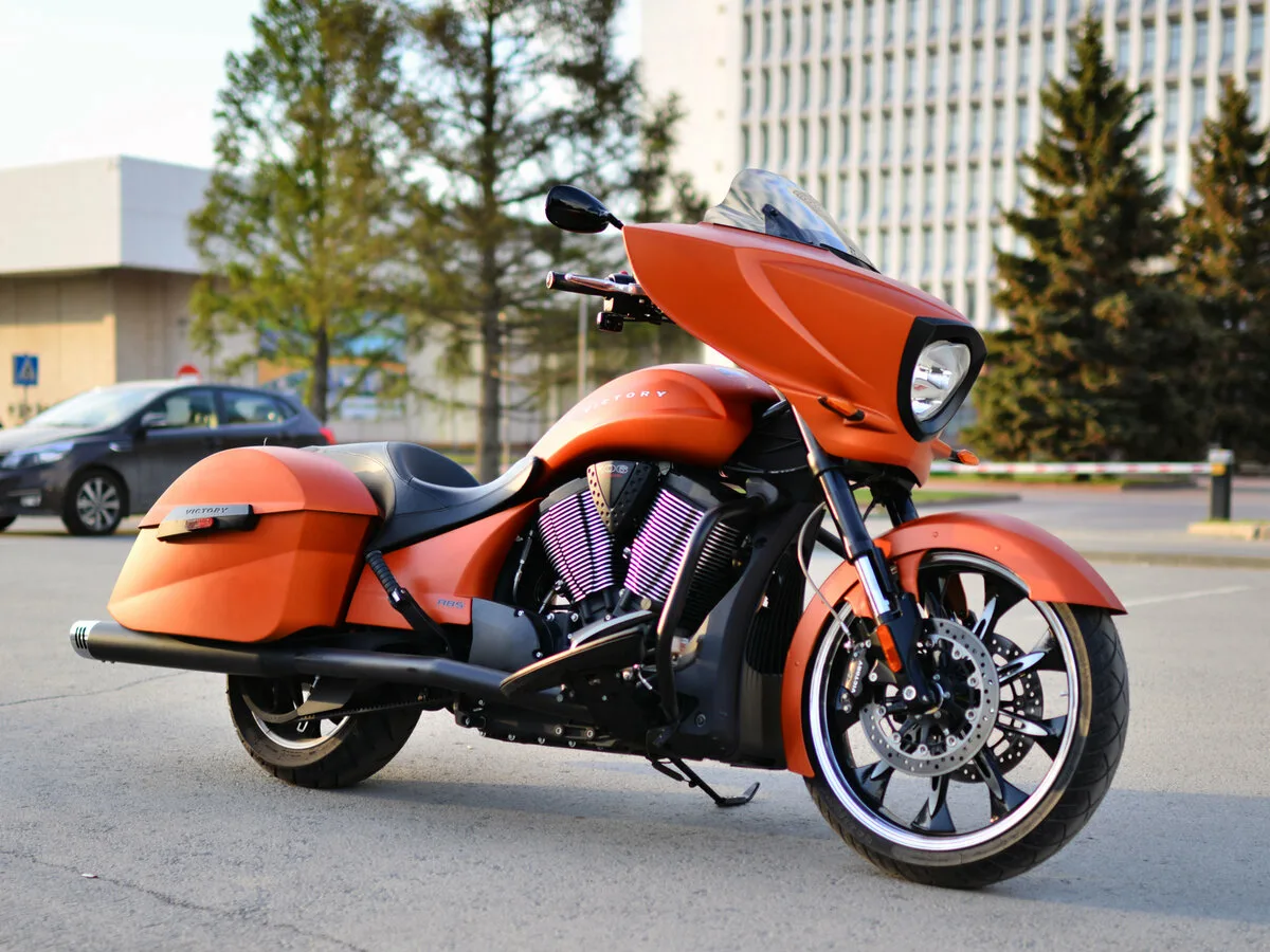 Данная линейка подразделяется на несколько моделей. Самыми распространенными среди американских и европейских потребителей являются мотоциклы Victory Сross Сountry. Мощная 4-цилиндровая силовая установка, 6-ступенчатая механика и, электронный впрыск горючего вместе со стильным аэродинамическим оперением так и зовут наездника в длительное путешествие. Для дополнительного комфорта райдера создатели предусмотрели: На базе этого круизера была разработана и представлена к 15-летнему юбилею компании новая модель Victory Сross Сountry tour LE. Начинка мотоцикла еще больше адаптирована под длительные поездки. Этот особенный байк оснащен компьютером, аудиосистемой и антиблокировочной системой, увеличенным лобовым стеклом и более обтекаемым оперением. Технические характеристики Victory Сross Сountry Чоппер Victory Сross Сountry модельного ряда 2015 порадует владельца: Цены Ценовая политика для круизера Victory Сross Сountry колеблется в пределах от 20 до 25 тысяч долларов. Диапазон зависит от на