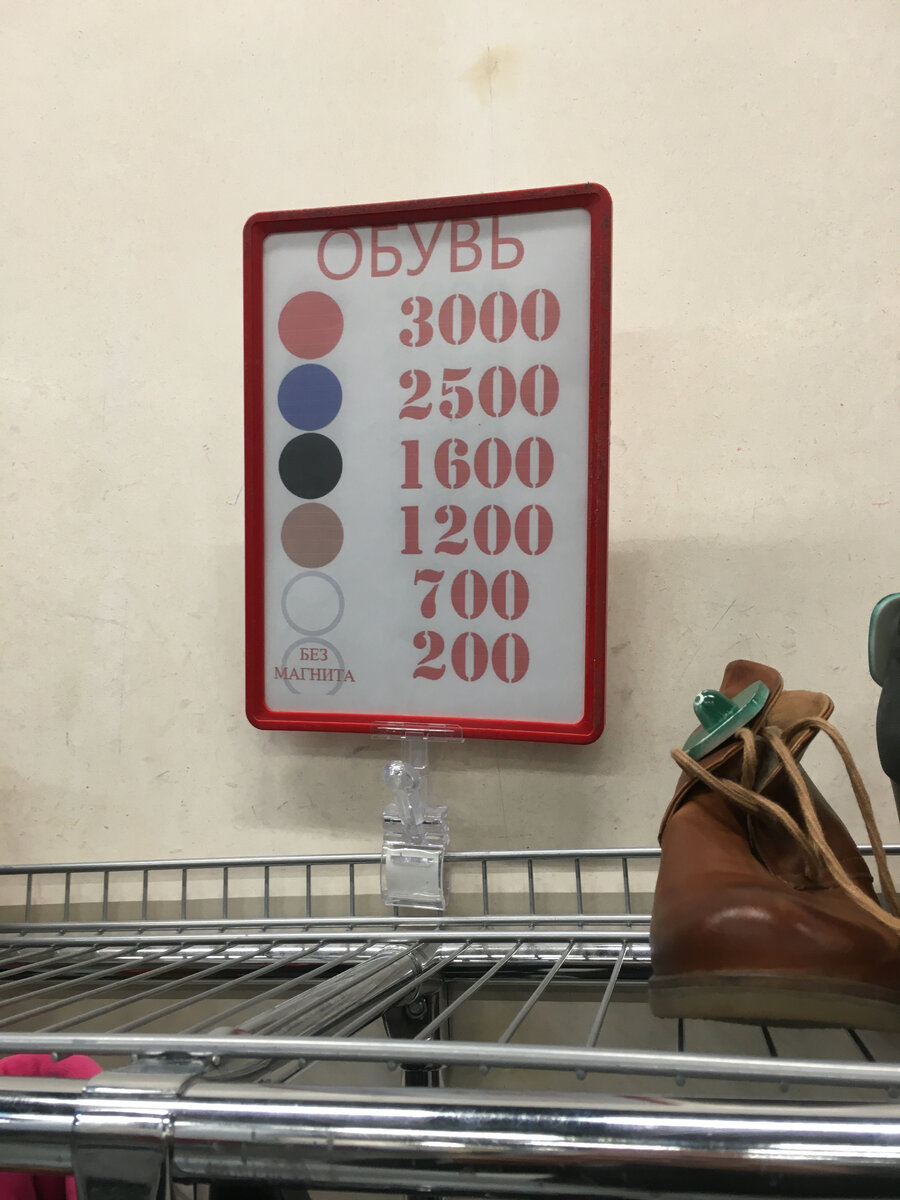 Всем привет! Меня зовут Маша. Я из Нижнего Новгорода.Как то гуляя по магазинам я увидела вывеску «секонд-хенд» и решила зайти ради любопытства. Теперь это мое хобби. Никогда не знаешь что найдешь. Продолжаем обзор. Напоминаю, цены соответствуют цвету магнита. Ботинки Esprit, размер 40 Полусапожки с вязаным голенищем, Geox, размер 36 Смотрю-стоят они, баскетбольные кроссовки. Старые знакомые, они уже были у меня в обзоре. Не поленюсь найти, хочется сравнить цену. Нашла. Цена такая же Тканевые кроссовки. Может быть детские? Потому что написано Zara boys, размер 37 Ботинки коричневый магнит, Knox, размер 41 Утепленные, на тинсулейте Кроссовки NewYorker, 46 размер Лыжные ботинки, размер 41 Производитель неизвестен. На подошве тоже не указано. SNS это вид крепления. Полусапоги Esmara, размер 36 По моему чёрный магнит Полусапожки на танкетке. Tamaris, размер 40 Сапоги с леопардом. Марка GTA, если правильно прочитала. Чёрный магнит Размер 9? Ботильоны Bata, размер 36 Кроссовки Liva