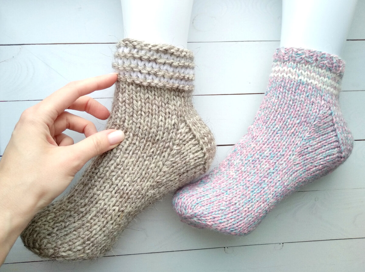 Кто любит полосатые вещи - танцуют в этом сезоне! )) Любовь эта модная стала снова :) Я помудрила-поэкспериментировала, как же нестандартненько сделать полоски на манжете серого носка, и вот что вышло (было бы лучше при вязании заметно контрастными нитями, да): Поймут описание не только те, кто умеет вязать носки на 4-5 спицах. P.S. Можно и рукава в манжетах оформить, о! Уже начала обдумывать :)) Так можно сделать и поворотными рядами, просто изменить кое-где лицевые ряды на изнаночные. "Переведите" и подумайте сами :) Описание для кругового вязания 1. Петли набираем сначала основным цветом. 2. Провязываем подготовительный ряд лицевыми. 3. Потом изнаночные петли. 4. Дальше берем нить другого цвета, делаем ряд лицевыми петлями. 5. Можете сделать еще один ряд лицевым петлями (для ниток и спиц меньше 5 мм). 6. Снова переходим на основной цвет, вяжем 1 ряд лицевыми. 7. Следующий ряд - изнаночными. 8. И повторяем сначала с другого цвета (с 4 пункта). Так и получается, что белые полоски п