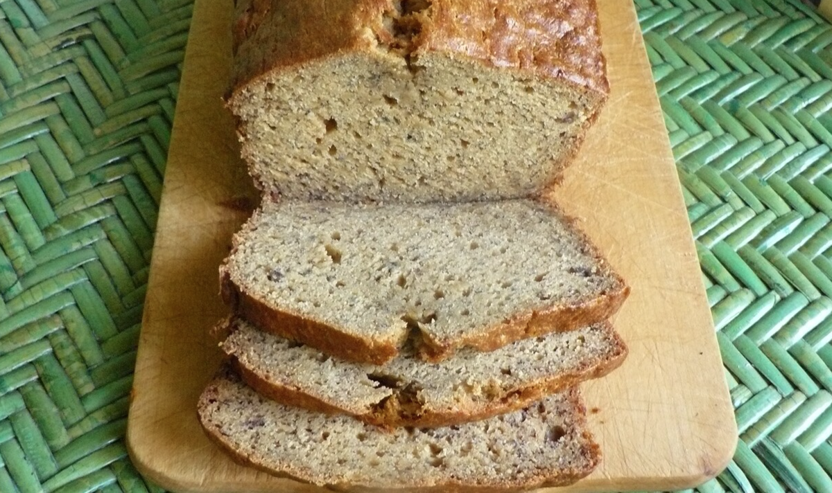 2 стакана универсальной муки 1 чайная ложка пищевой соды ¼ чайной ложки соли ½ стакана сливочного масла ¾ стакана коричневого сахара 2 яйца, взбитые 2 ⅓ чашки пюре из перезрелых бананов Приступим к приготовлению: Шаг 1 Разогрейте духовку до 175 градусов по Цельсию. Слегка смажьте маслом сковороду для хлеба размером 9x5 дюймов. Шаг 2 В большой миске смешайте муку, пищевую соду и соль. В отдельной миске смешайте сливочное масло и коричневый сахар. Добавьте яйца и банановое пюре до получения однородной массы. Смешайте банановую смесь с мучной смесью; перемешайте только для увлажнения. Вылейте тесто в подготовленную форму для хлеба. Шаг 3 Выпекайте в предварительно разогретой духовке от 60 до 65 минут, пока зубочистка, вставленная в середину буханки, не выйдет чистой. Дайте хлебу остыть на сковороде в течение 10 минут, затем выложите на решетку.