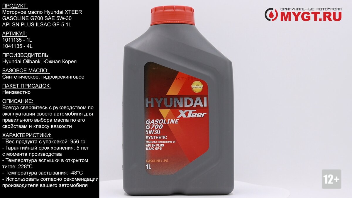 Моторное масло Hyundai XTEER GASOLINE G700 SAE 5W-30 API SN PLUS ILSAC GF-5 1L #ANTON_MYGT