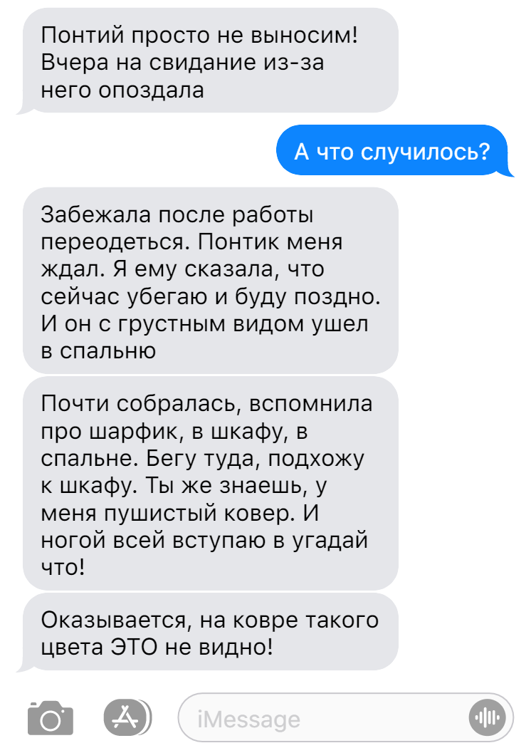 Кот, от которого не знаешь, что ждать - встречали таких? Время от времени в каждую кошку как будто что-то вселяется, или переключается невидимая кнопочка. И вместо милой "киси" мы получаем полубезумное супер активное существо с горящими глазами! А может немного правы вьетнамцы и на кончике хвоста у кошки чёртик качается?! Мне об этом веровании сегодня рассказал в комментариях читатель, Александр Кумашиевич. Но, приступим. Сегодня для Вас подборка переписок о вероломных котах. Вот так - отомстил. Ждал, ждал бедный кот... А в следующей истории хозяйка очень напугалась, но не во всем кот виноват. Чаще всего мы сами себя пугаем. Хотя ночью, в темноте, наполовину спящая... Я бы тоже напугалась. Еще одна история о котике... который просто любил высоту. И, напоследок, еще одна коротенькая история из жизни кота. И не только кота. Улыбайтесь каждый день! Читайте новую статью: "Смешные переписки о тех, кто слишком много ест" - здесь. Спасибо всем, кто помогает нам кормить, лечить и пристраивать