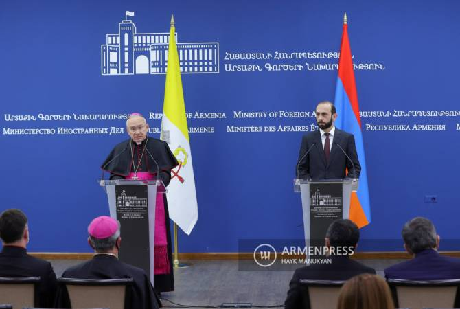 Открытие дипломатической миссии Ватикана в Армении станет символом наведения мостов в регионе, создания возможностей для встреч и для установления справедливого и долгосрочного мира для Армении и международного сообщества в целом. Как сообщает «Арменпресс», об этом заявил находящийся в Армении с официальным визитом заместитель государственного секретаря по общим вопросам Святого Престола Эдгар Пенья Пара. По словам Эдгара Пенья Пара, его официальный визит в Армению, встреча на высоком уровне с министром иностранных дел Армении подтверждают «дружеские отношения и сотрудничество, которые всегда существовали между Святым Престолом и Республикой Армения». «Я привез приветствия от Папы Франциска, у которого остались яркие воспоминания о его визите в Армению в 2016 году, его недавней встрече с президентом Саргсяном и Католикосом всех армян Гарегином II», - сказал он. Цель визита Эдгара Пенья Пара открытие Апостольской нунциатуры Святого Престола в Ереване. В связи с этим он поблагодарил пре