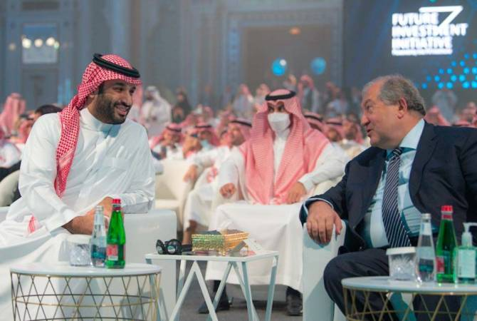 Президент Республики Армения Армен Саргсян впервые в истории независимой Армении посетил одну из ключевых стран арабо-исламского мира - Саудовскую Аравию. Как сообщили «Арменпресс» из Аппарата президента Республики Армения, в рамках этого визита, имеющего исключительное значение в истории армяно-арабских отношений, в частности, отношений между Республикой Арменией и Саудовской Аравией, президент Армении присутствовал на V форуме «Будущие инвестиционные инициативы». В нем участвовали главы государств, члены правительств, руководители известных транснациональных, глобальных компаний и бизнесмены. Президент Саргсян вместе с наследным принцем Саудовской Аравии Мухаммедом бен Салманом присутствовали на церемонии открытия форума. Президент Армении и наследный принц Саудовской Аравии, говорили о необходимости развития отношений между двумя странами и их будущем. Было отмечено, что богатые исторические связи между двумя народами станут хорошей основой для построения будущих межгосударственных