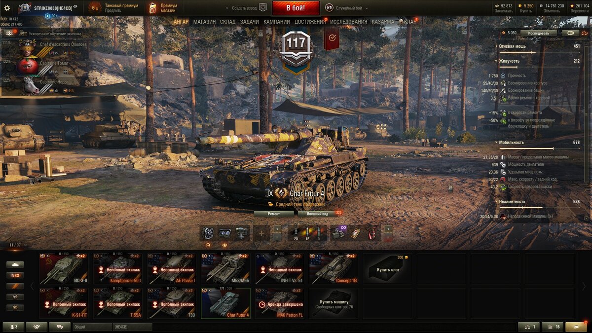 Всем привет, дорогие друзья! Сегодня, дам советы по полевой модернизации для французского среднего танка 9 уровня Char Futur 4 в World of Tanks. Данная машина довольно популярна среди игроков и думаю, данная информация будет полезна обладателям данной машины или тем, кто хочет ее пробрести. Чуть не забыл. Полевая модернизация, настраивалась под такое оборудование 2.0. Полевая модернизация для Char Futur 4 1 уровень Прокачиваем и идем дальше. 2 уровень Берем на улучшение стабилизации и ходовой. Так как мы играем в основном на второй и третьей линии, повреждают БК и двигатель, очень редко. Лично, не могу припомнить, когда мне ломали БК. Можно сделать выводы, что БК и двигатель ломается очень редко. Также, у нас по умолчанию установлен большой ремкомплект, который способен починить сразу все модули, на тот случай, если нам сломают, к примеру, одним выстрелом БК и поставят на каток. 3 уровень Прокачиваем и идем дальше. 4 уровень Выбираем к точности орудия. Как я уже писал выше, что мы игра