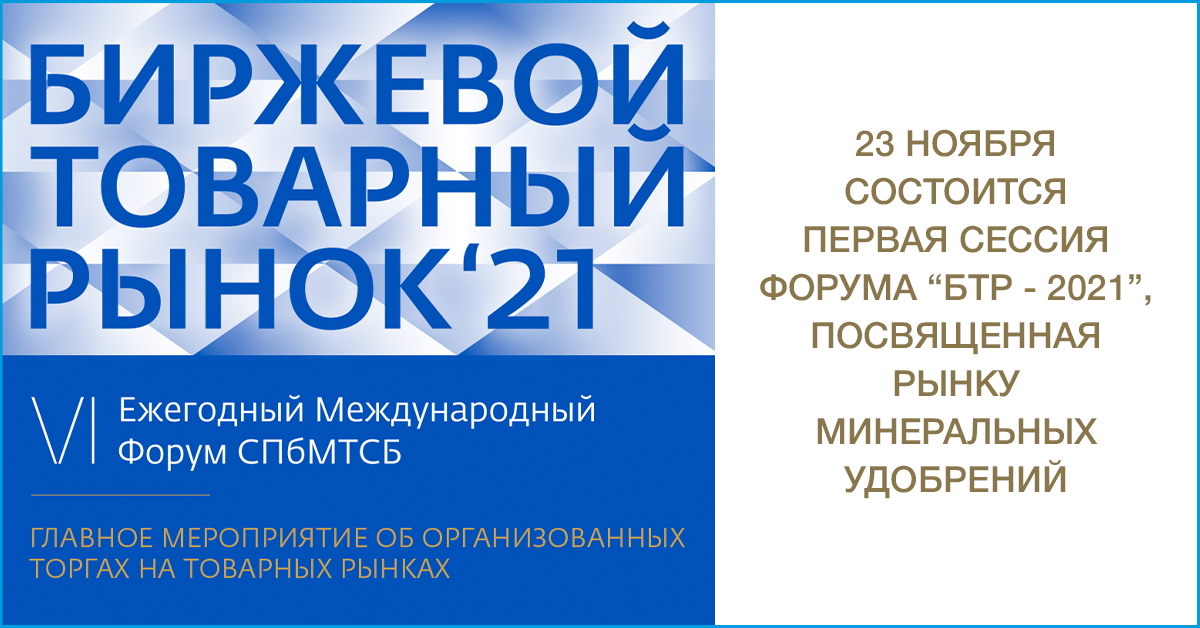 Меньше месяца осталось до первой сессии VI Ежегодного Международного форума СПбМТСБ «Биржевой товарный рынок-2021», посвященной вопросам развития механизмов биржевой торговли минеральными удобрениями. 23 ноября регуляторы рынка, производители, покупатели и брокеры соберутся вместе, чтобы обсудить самые актуальные вопросы развития биржевых механизмов в отрасли. А также новости регулирования рынка и итоги торгов 2021 года, включая кратный рост объемов реализации и преимущества биржевых торгов. Главные темы сессии: Поучаствовать в сессии в этом году можно в двух форматах: