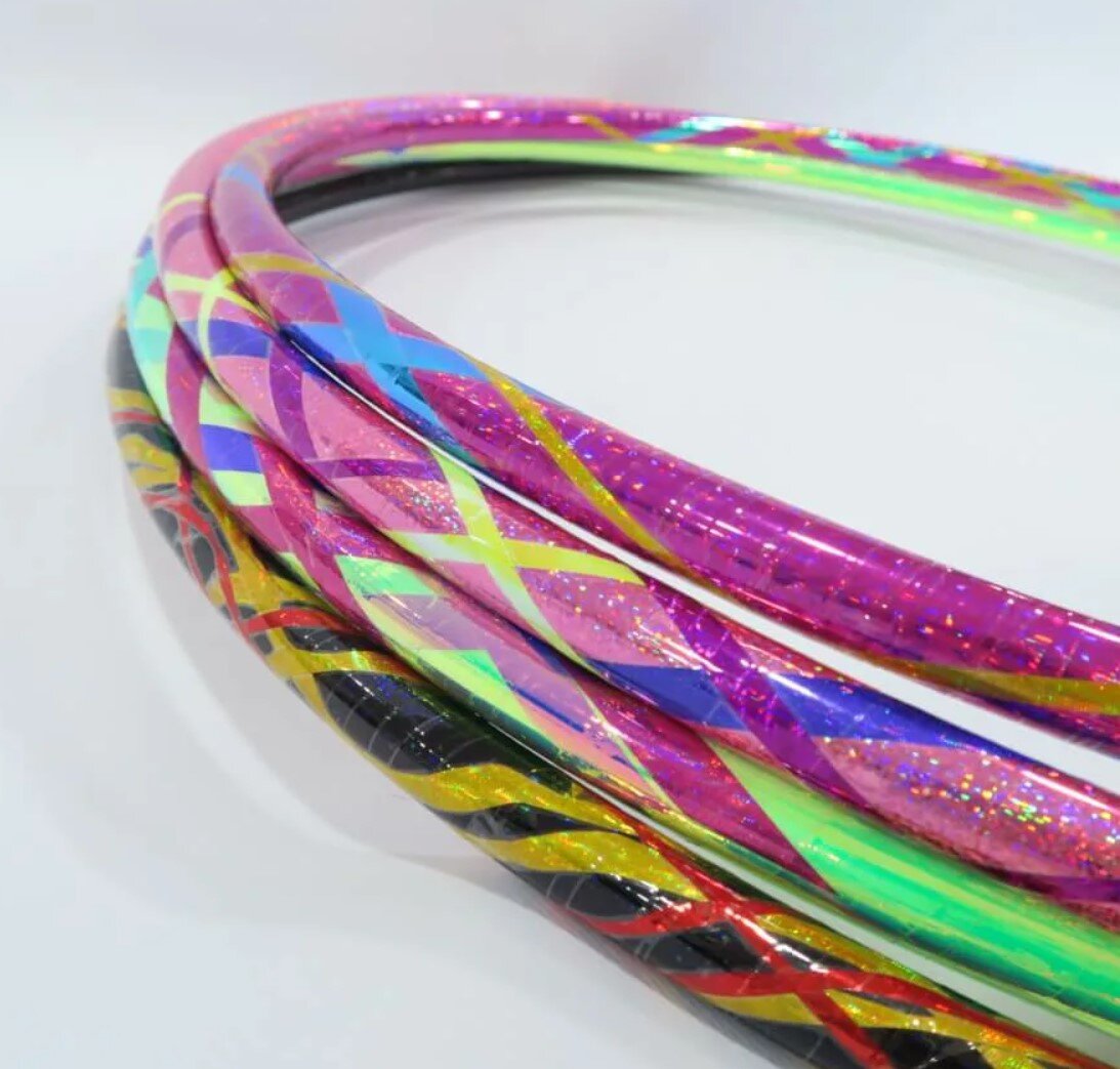 Спортсменки в художественной гимнастике используют 5 различных предметов для выступлений. Это булавы, лента, скакалка, мяч и наш сегодняшний герой - обруч. Обруч ценится за его простоту и лёгкость в освоении. Это один из первых предметов, с которыми начинают выступать маленькие спортсменки. Но профессионалы высокого класса ценят его всё за ту же простоту и податливость. Обруч делают из полиэтиленовой трубки, он получается эластичный. Размер предмета измеряют по внутреннему диаметру. Максимум - 90см, больше не делают. Выбирают обруч под рост гимнастки. В идеале он должен быть точно до косточки бедра. Обычно новый обруч покапают каждые 1,5 - 2 года. Как я уже говорил, хороший обруч эластичен. Он подобно мячику отскакивает от поверхности и ощутимо сгибается, если надавить. Это его свойство чрезвычайно важно, нужно позаботится, чтобы предмет сохранил свою эластичность. Важно не деформировать обруч при хранении и проявлять аккуратность при транспортировке. Лучше, чтобы он лежат горизонтальн