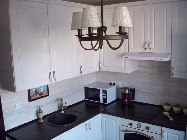 Интерьер в классической кухни: потолок, стены, освещение Потолок В данном случае можно обойтись без полета фантазии. Потолок в классическом интерьере выглядит просто, без вычурных деталей и декоративных элементов. Чаще всего в помещении устанавливается обычный белый потолок из гипсокартона, также можно соорудить двухуровневый потолок, тоже белого цвета. При этом перепады уровней не должны быть большими. Стык потолка и стен следует украсить потолочными плинтусами из полиуретана или гипса. Накладные элементы в виде лепнины можно использовать, если помещение кухни просторное, а сами потолки — высокие. Мебель Предпочтительно использование натуральных материалов. Это может быть дерево ценных пород, а также камень. Недопустимо применение пластика и многочисленных хромированных элементов. Натуральный камень можно использовать для изготовления столешницы, для обивки мягких частей мебели следует выбирать только качественный дорогой текстиль. Отлично будут смотреться такие декоративные элеме